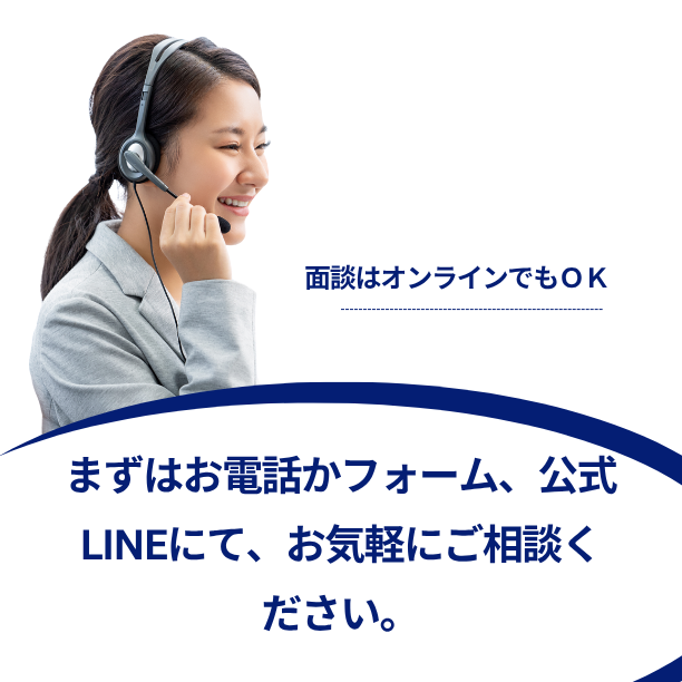 対面、またはオンライン通話形式で無料相談を実施いたします。